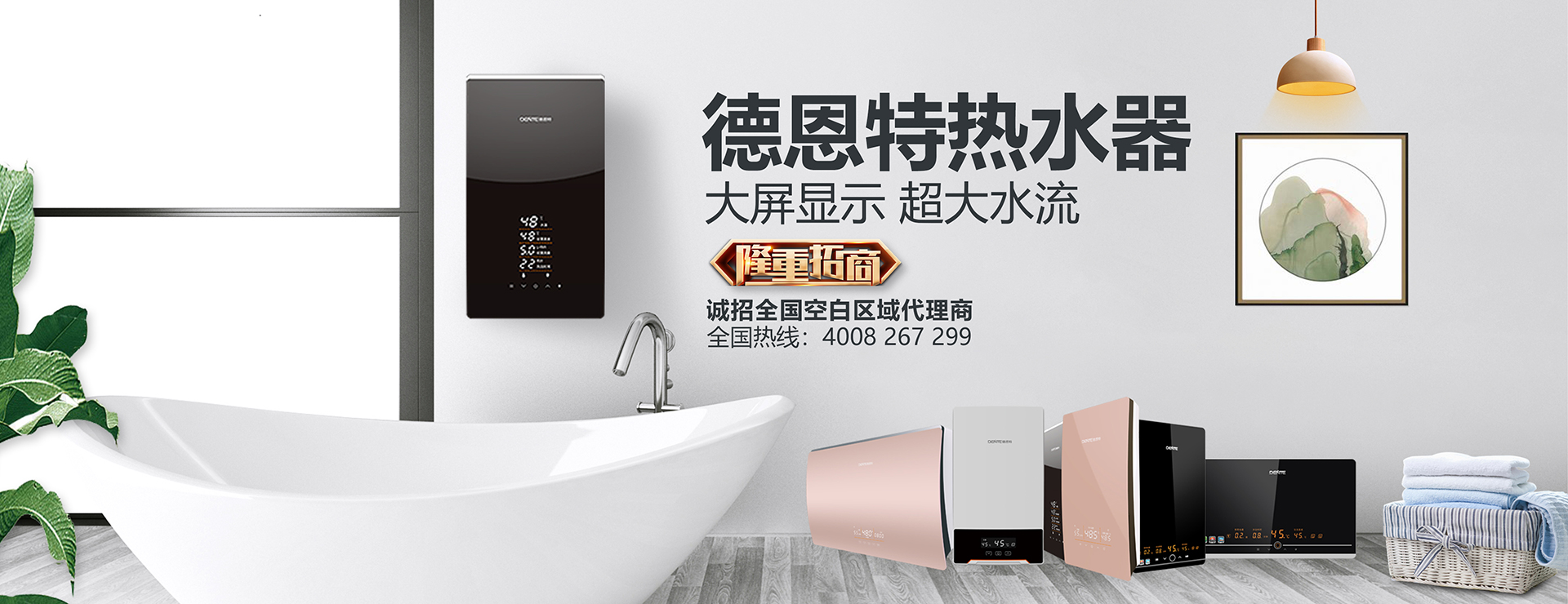 德恩特品牌旗下涵蓋即熱式電熱水器,速熱式電熱水器,快熱式電熱水器品牌和凈水機等